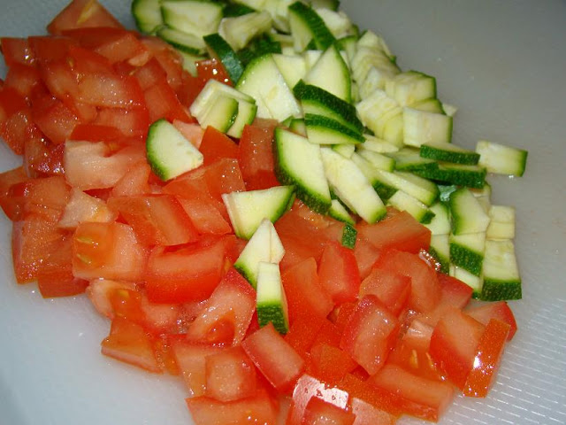 Para o arroz aquecer azeite com o alho e refogar os legumes picados. Juntar o arroz e deixar fritar um pouco, de seguida adiciona-se a água e tempera-se com sal.