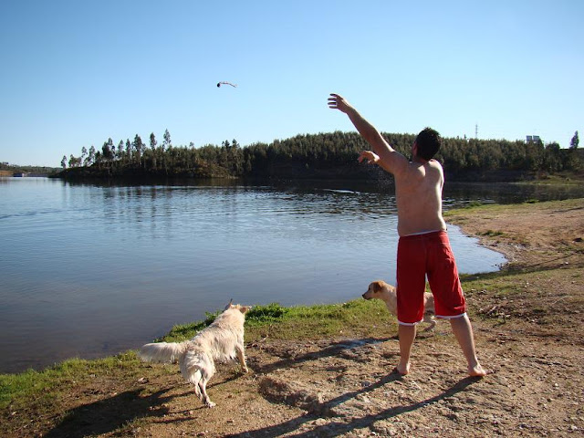 Que gostoso Sónia, passar o domingo junto à familia... Sinto falta desses momentos. Que continuem assim por muitos e muitos anos.Adorei esses cãezinhos, em especial os dois com o galho na boca dentro da água. Lindos!!!Bom dia pra voce amiga...bjocas