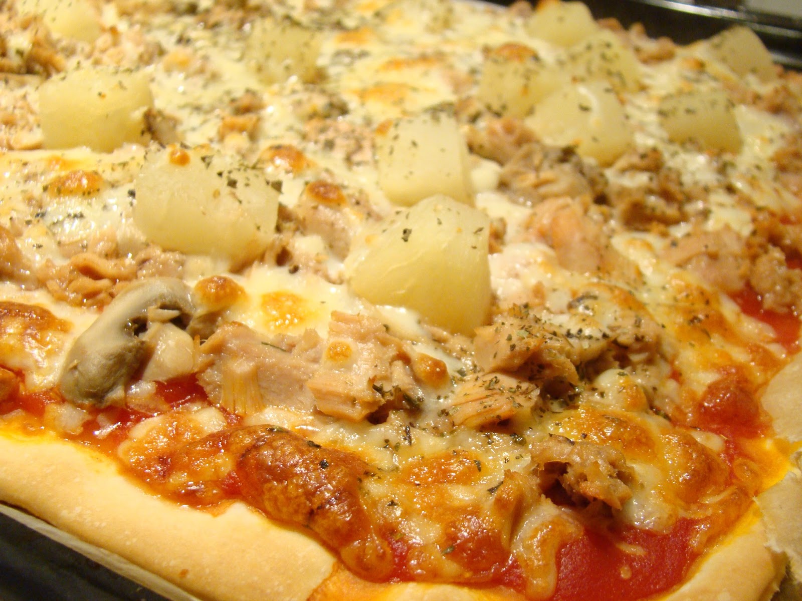 Bruno used in this pizza: Tomato pulp, Tuna, Mushrooms, Pineapple, mozzarella cheese and oregano.
