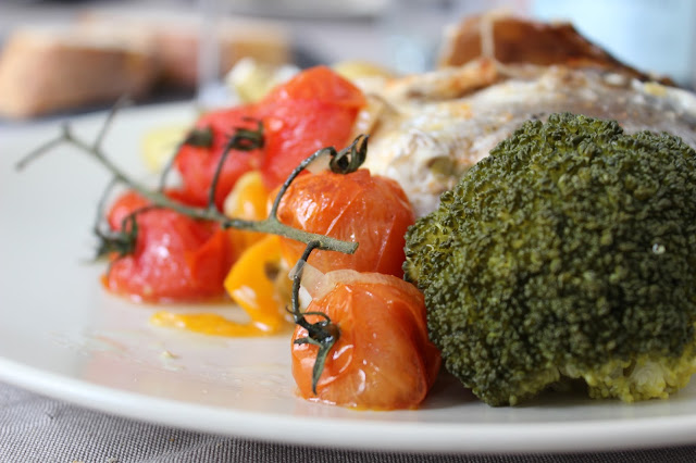 2. À parte preparar os legumes para colocar por cima do salmão. Para isso basta refogar o alho picado em azeite e saltear os legumes até que tenham perdido a maior parte da água. Temperar de sal e pimenta.