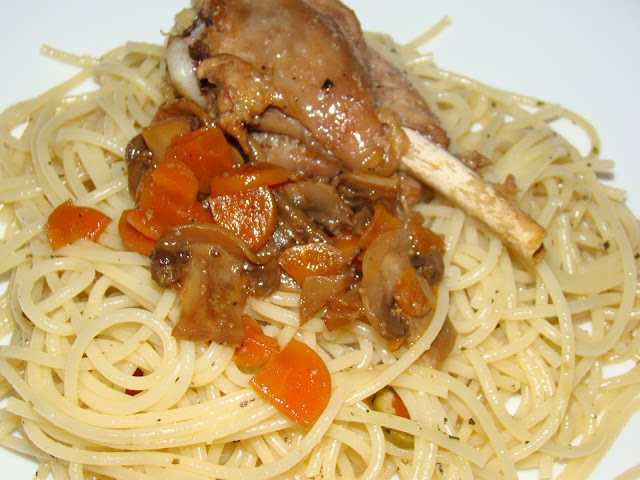 Para a massa, cozer o esparguete normalmente. No fim escorre-se e adiciona-se azeite, oregãos e manjericão.